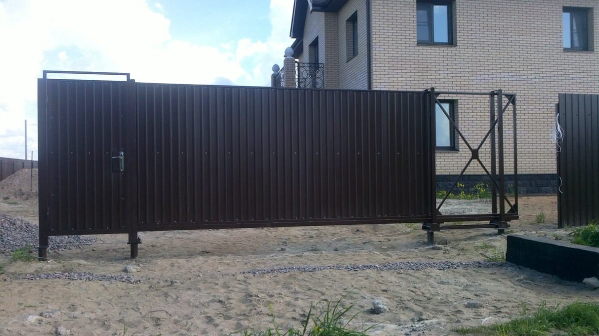 Современный тип ворот рельсового, консольного или подвесного типа. Применяем сваи диаметром 76 или 89 мм.