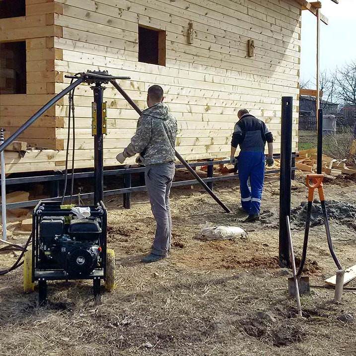Основание этого типа может быть обустроено на грунтах любого типа, даже в тех случаях, когда заливка бетоном затруднительна. Например, основание на сваях подходит для песчаного, глинистого грунта, при близком залегании грунтовых вод, с высоким содержанием щебня, т.д.